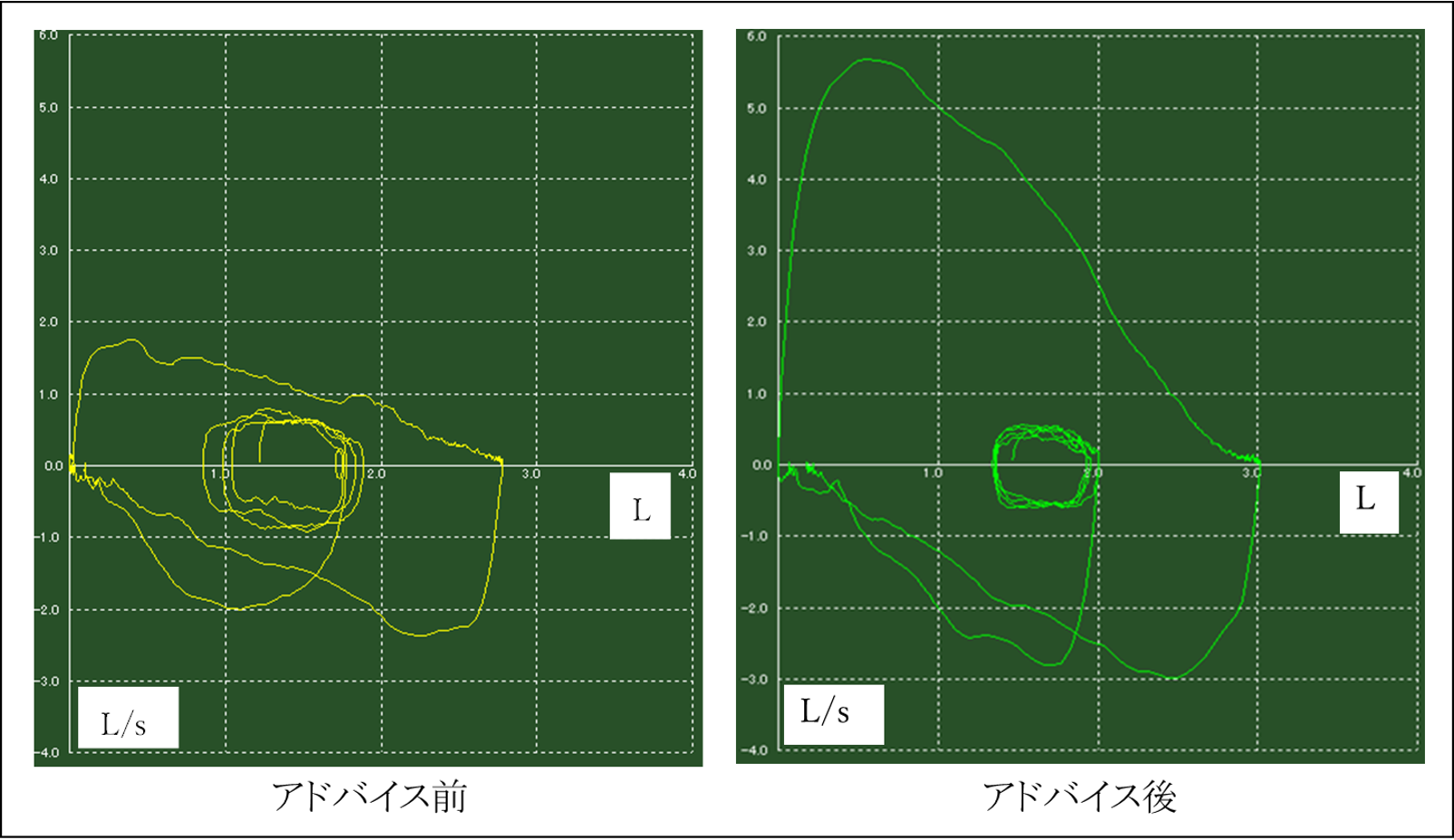 左はアドバイスを行う前、右はアドバイスを行った後の結果である。