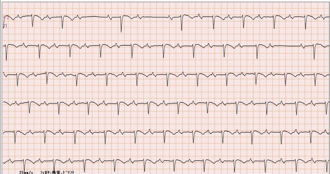 健康診断で心電図異常を指摘され循環器内科を受診した。